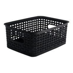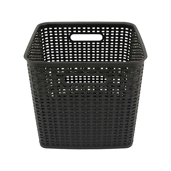 The Advantus Extra Large weave bin is perfect for storing a variety of office or household supplies. This sturdy plastic bin is easy to clean, features two handles for easy transportation, and has a stylish woven design.
