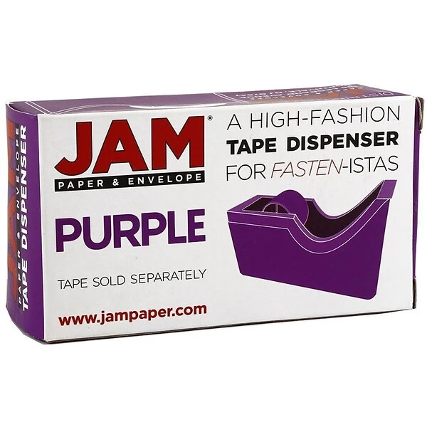 JAM Paper® Purple Office & Desk Office & Desk Set includes 1 stapler and 1 tape dispenser. Both of these supplies are made out of hard, durable plastic and shiny grey steel. Both have weighted bottoms to help them stay in place on your desk’s surface. Both of these supplies feature a bright, bold purple color that will stand out with a fashionable flair in your work space! The stapler in this set has the capacity to for over 200 staples at one time. The tape dispenser designed to accommodate one standard sized roll of clear tape! Use this set for office or classroom purposes to keep your documents and papers securely fastened together!
