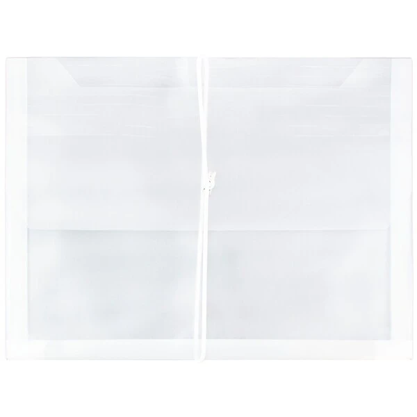 JAM Paper® Clear Letter Booklet Size Plastic Expansion Envelopes with Elastic Band Closures are ideal for storing multiple standard sized sheets of paper at the office, in your desk, on you shelf, in your dorm room, in your locker, or anywhere! Each one is made from pliable yet durable, transparent plastic and closes with an attached white elastic band that expands to encircle each envelope in the middle. With 13 x 9.75 inches of space, and the capacity to expand up to over 2 inches in width, these envelopes can handle larger files. Reliably protect your documents from dirt, bends, and tears with these clear envelopes! (Sold Individually)