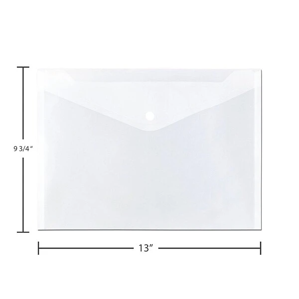 Keep documents protected from spills, stains, and other types damage with these clear poly envelopes. The transparent poly construction lets you view contents stored inside these envelopes, while the convenient snap closures hold contents securely in place. These JAM Paper letter booklet envelopes come in a pack of 12 to meet your office’s high-volume document storage needs.