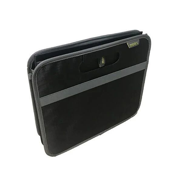 The meori X-large Heavy Duty foldable fabric box is a trunk organizer designed especially for a large portable office, grocery trips, car vacations, and trunk organization. It holds up to 65 lbs. and folds and unfolds in three quick steps. Collapsible and folds flat when not in use. This box features two compartments and two interior mesh pockets. Snaps allow for use of just one compartment and hold the box closed when not in use. Made with extra-tough ripstop fabric. Wipes clean easily with a damp sponge.