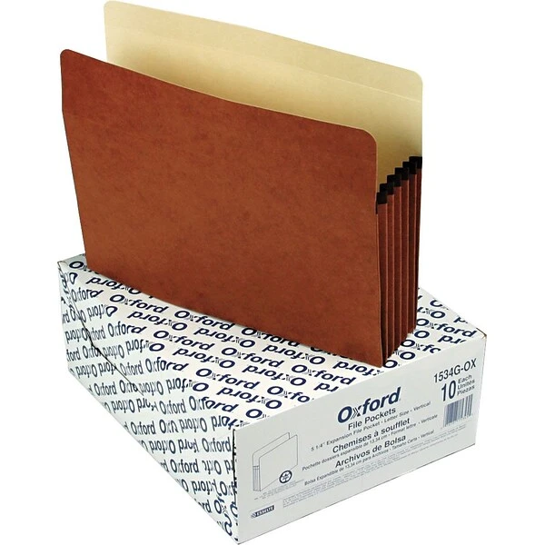 Staples® Heavy-Duty Reinforced File Pocket, 3.5″ Expansion, Letter Size, Brown, 10/Box (704358)