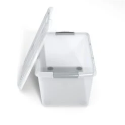 - Strong, stackable, storage box, complete with lockable lids