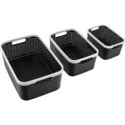 Advantus Nest And Stack Open Lid Storage Bin, Black, 3/Pack (39221)