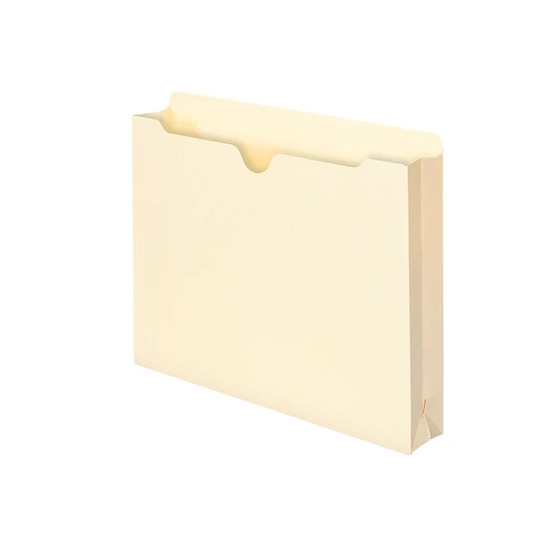 These Smead manila file jackets are the perfect accompaniment to the professional with important projects to protect and store. The 2-inch expansion gussets rise fully along both sides, allowing plenty of room for those weightier projects, and the convenient thumb-cut makes opening the file easy. These letter size file jackets feature durable construction with 11-point paper stock.