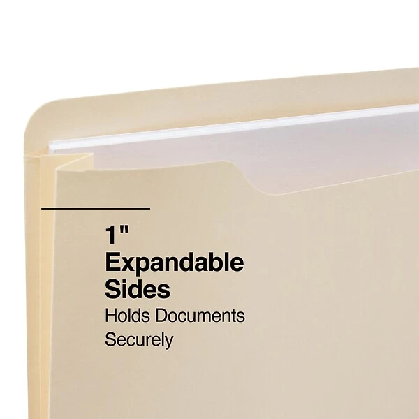 Transport documents easily and safely with these letter-size file jackets. The manila paper stock offers durability, while the sturdy straight-cut tab provides a convenient labeling space for easier reference. Each jacket has a 1-inch expansion capacity to accommodate a thick stack of paper. These Staples letter-size manila file jackets are packaged 50 per carton, making it easy to keep your office stocked.