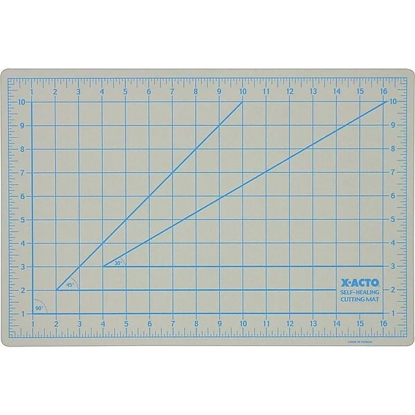 Trim art materials with precision by using this cutting mat. The gray self-healing PVC material offers a durable surface that withstands sharp craft tools, and the nonslip bottom keeps the mat in place. This X-ACTO cutting mat has blue 1-inch grid patterns for customizing accurately sized shapes and patterns.